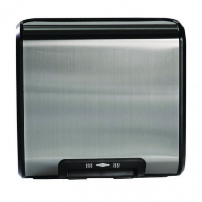 Dual-flow parallax ducts project air in a broad swirling pattern, ensuring fast and comfortable hand drying. Auto-sensor turns dryer on immediately after hands are placed within proximity. Quiet operation: 73 dBA.