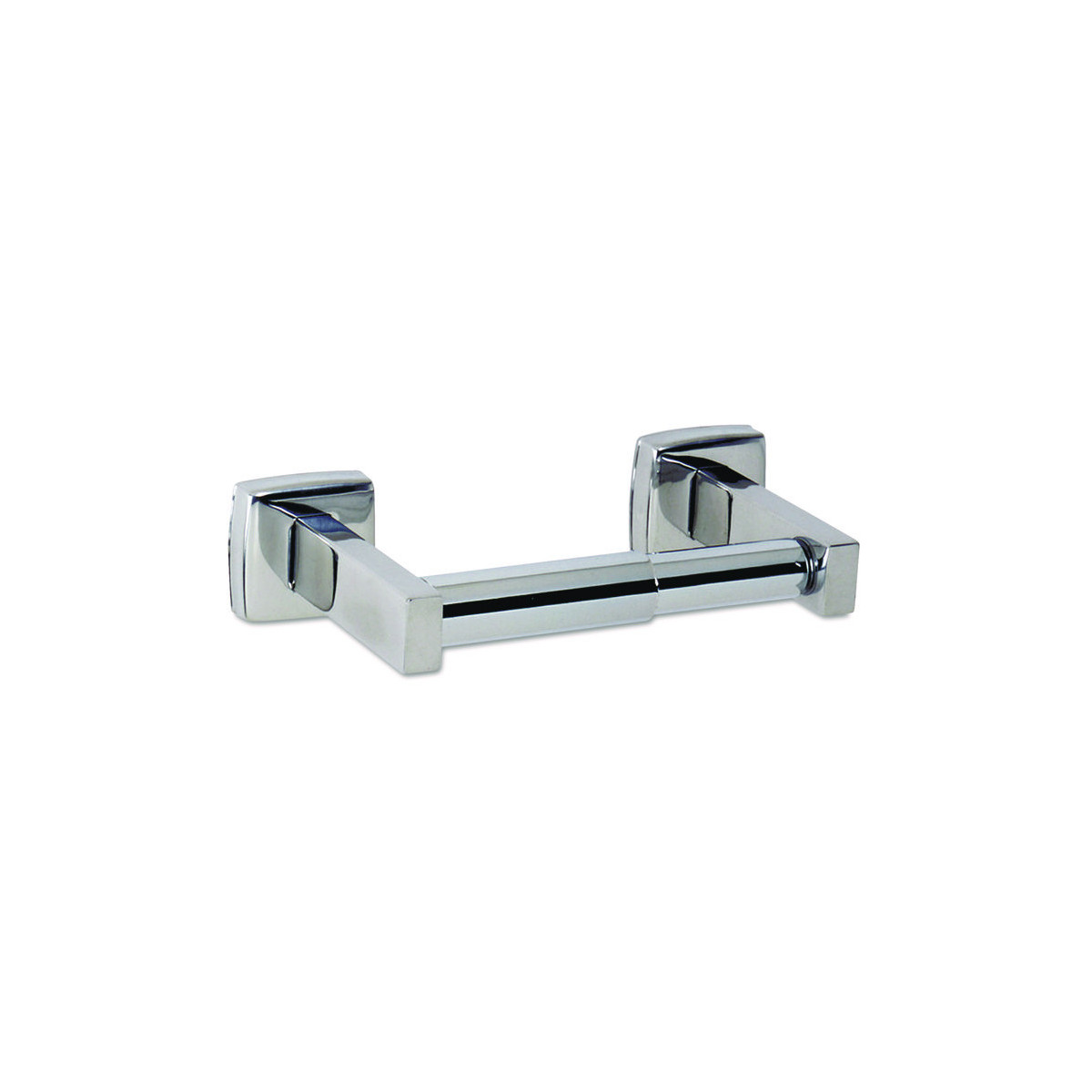 Bright-polished stainless steel finish. Support arm flanges lock to concealed stainless steel wall plate. Tissue snaps into place easily.