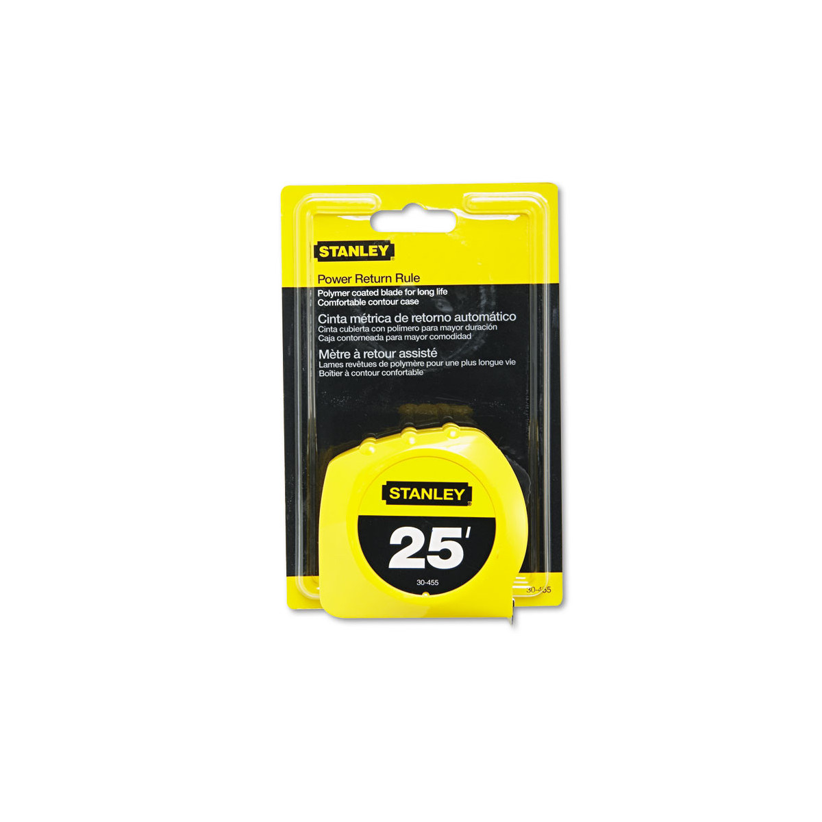 Power Return Rule Tape Measure, Plastic Case, Polymer-Coated Blade, 1" x 25 ft, Yellow