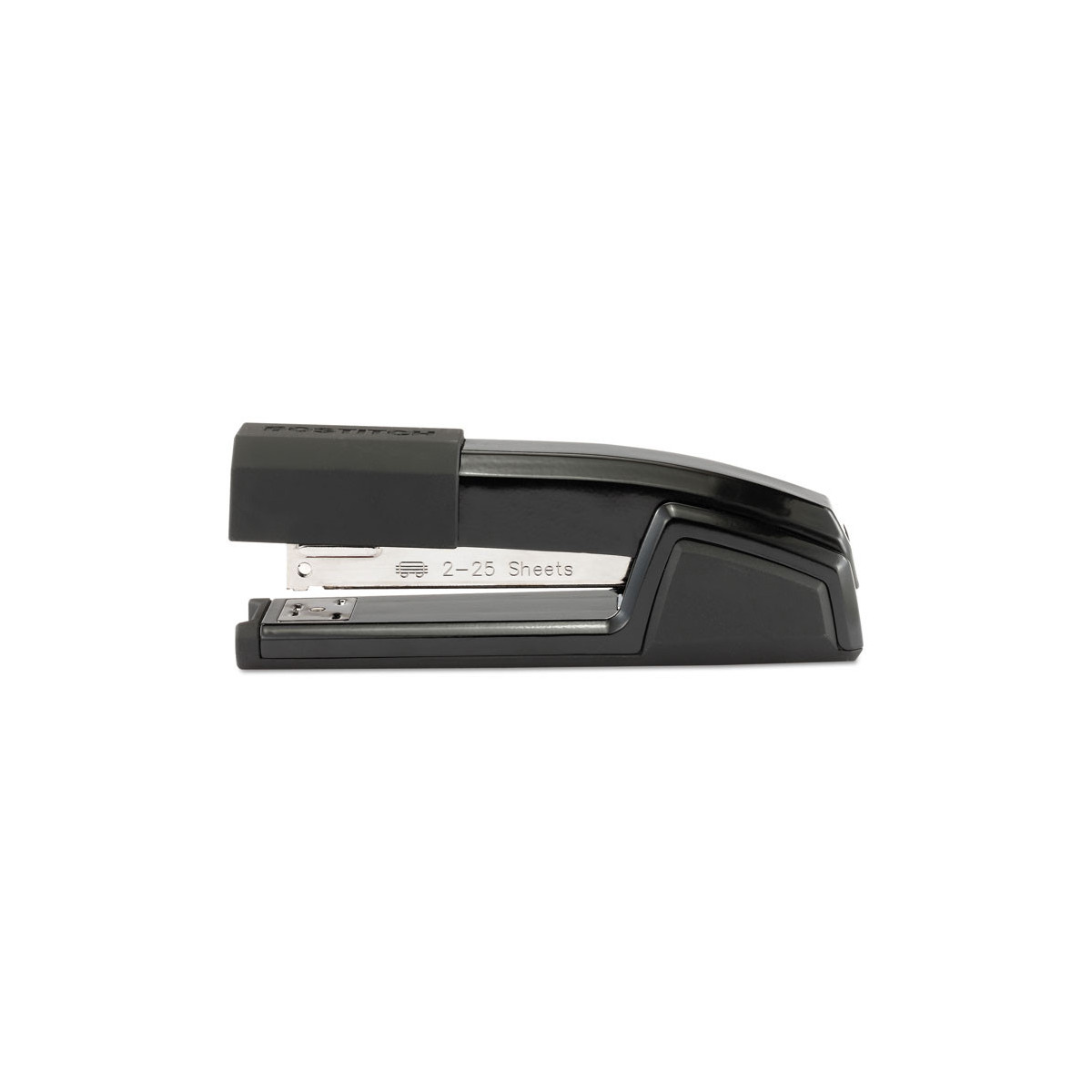 Premium performance without sacrificing aesthetics – the Epic is true to its name. The stapler conveniently has: a swing-out staple EZ Remover for quick fixes, a hidden Staple Store slot to keep extra staples handy, and ability to open 180-degrees for bulletin board tacking and crafting. Made of durable die-cast metal with a soft rubber grip and base, this office necessity is made for comfortable, lasting use. No-Jam technology prevents staple jams for smooth stapling of up to 25 sheets of paper (25% more than standard staplers). As a bonus, traditional Dual Clinch adjustable plate provides an option of standard or temporary stapling (for a quick way to fasten and quickly remove later). An accent to any surface it rests on, the stapler stands vertically or horizontally for easier access and storage. Uses Premium Standard Staples to deliver extraordinary results. Perfect for school, work or the home office.