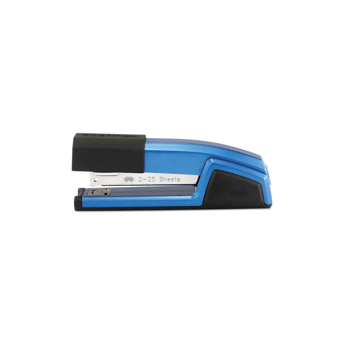 Premium performance without sacrificing aesthetics – the Epic is true to its name. The stapler conveniently has: a swing-out staple EZ Remover for quick fixes, a hidden Staple Store slot to keep extra staples handy, and ability to open 180-degrees for bulletin board tacking and crafting. Made of durable die-cast metal with a soft rubber grip and base, this office necessity is made for comfortable, lasting use. No-Jam technology prevents staple jams for smooth stapling of up to 25 sheets of paper (25% more than standard staplers). As a bonus, traditional Dual Clinch adjustable plate provides an option of standard or temporary stapling (for a quick way to fasten and quickly remove later). An accent to any surface it rests on, the stapler stands vertically or horizontally for easier access and storage. Uses Premium Standard Staples to deliver extraordinary results. Perfect for school, work or the home office.