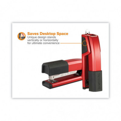 Premium performance without sacrificing aesthetics – the Epic is true to its name. The stapler conveniently has: a swing-out staple EZ Remover for quick fixes, a hidden Staple Store slot to keep extra staples handy, and ability to open 180-degrees for bulletin board tacking and crafting. Made of durable die-cast metal with a soft rubber grip and base, this office necessity is made for comfortable, lasting use. No-Jam technology prevents staple jams for smooth stapling of up to 25 sheets of paper (25% more than standard staplers). As a bonus, traditional Dual Clinch adjustable plate provides an option of standard or temporary stapling (for a quick way to fasten and quickly remove later). An accent to any surface it rests on, the stapler stands vertically or horizontally for easier access and storage. Uses Premium Standard Staples to deliver extraordinary results. Perfect for school, work or the home office.