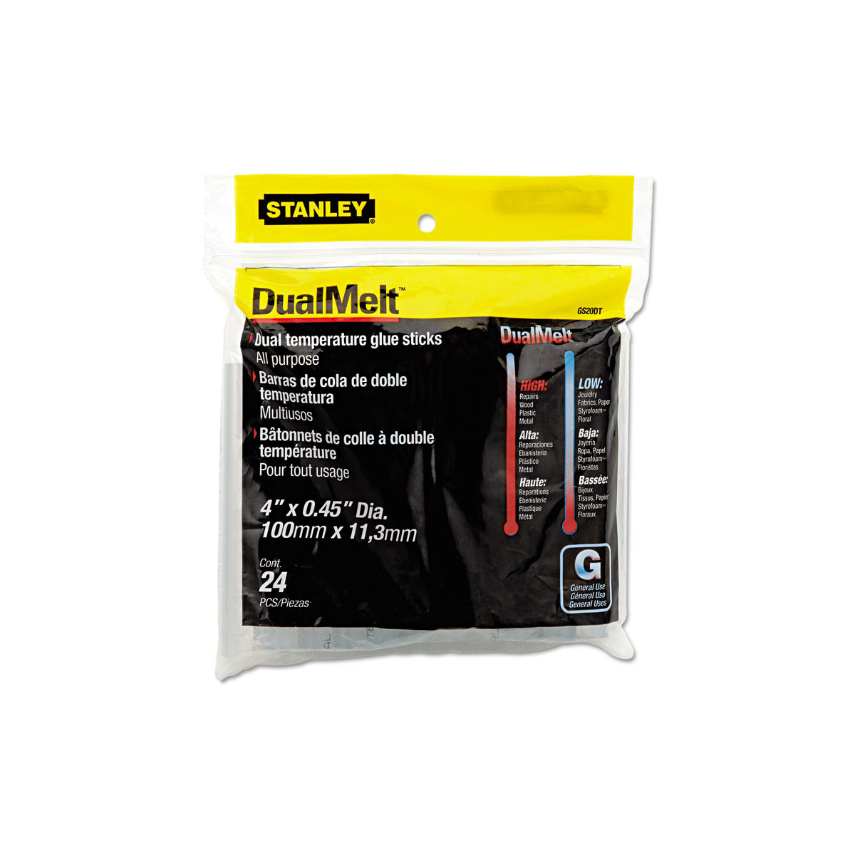 The Stanley GS20DT Dual Temperature Glue Sticks are designed for use in standard hot melt, low temperature and dual temperature glue guns. Excellent for bonding heat-sensitive materials, as well as general applications, these standard diameter glue sticks and are for use with Stanley GR20, GR25 and GR100 Glue Guns.