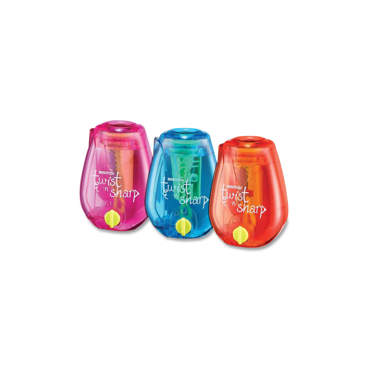 Twist-n-sharp two-hole pencil sharpener features ratchet technology in the sharpener for easy sharpening. The ratchet allows for faster sharpening without ever having to let go of the pencil. This technology is only offered on stitch premium office supplies. This sharpener also offers the convenience of two different sized holes so you can sharpen standard pencils as well as jumbo pencils! So even as your child transitions from learning pencils to standard pencils, your sharpener can remain the same! For products you can rely on, there's always Bostitch® Office!