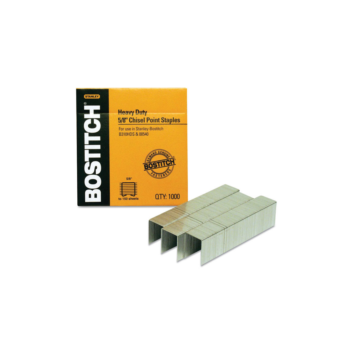 Premium heavy-duty staples are designed to deliver optimal stapling performance. Superior-quality, high carbon steel wire reduces staple buckling and jamming. The finely chiseled points pierce stacks of paper for maximum sheet capacity. Compatible with Bostitch® Heavy-Duty Staplers.