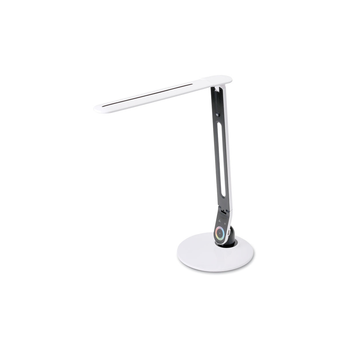 Feeling a bit blue? Let it show! With a one-of-a-kind look, this desk lamp offers stunning light that changes color! It features a color changing strip activated via the touch-sensitive color selection wheel. The dimmer function even lets you select the brightness level out of three levels. Charge your phone or tablet right from your desktop, too! The included USB port provides the ability for you to easily charge your most needed devices. This color changing desk lamp uses only 10 watts of power and uses LEDs that use 85% less energy than incandescent lamps. The lamp head and arm is fully adjustable, allowing you to effortlessly change the position of light.