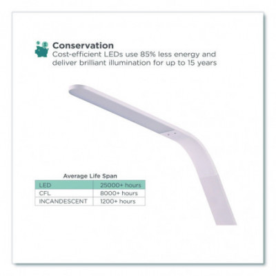 This LED task light makes a great fit right on top of the desk in your office. It features a modern design with a wood grain base for added texture. Select your desired brightness with the dimmer function. It includes three levels of brightness so you receive the perfect amount of light. Simulating natural daylight, this 7-watt lamp is full-spectrum and easy on the eyes. Best of all, this white LED desk lamp includes two integrated USB ports. Charge your computer, phone, tablet or smart watch all from your desktop. No more crawling around to find an available outlet. Requires LEDs that use 85% less energy than incandescent lightbulbs. You should feel proud to make the smart choice!