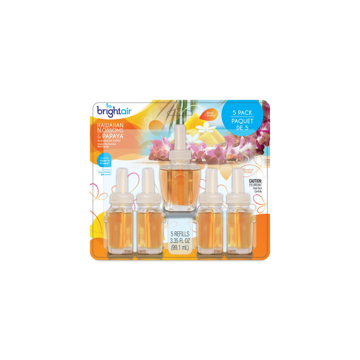 Electric Scented Oil Air Freshener Refill, Hawaiian Blossoms and Papaya, 0.67 oz Bottle, 5/Pack