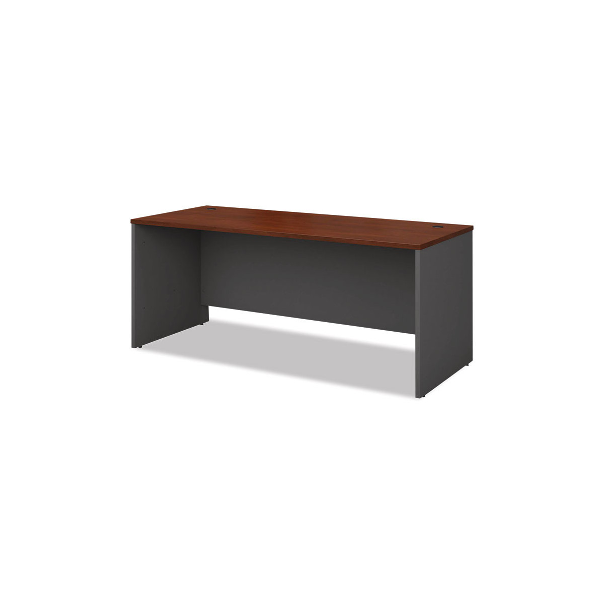 Series C Collection Desk Shell offers classic styling with clean lines and extended modesty panels. Constructed with 100% thermally fused laminate for durability and superior resistance to scratches and stains. Integrated wire management located in desktop grommets conceals cables. Add a Hutch for storage or use as a standalone desk component in a limited space. Accepts 2- or 3-drawer Mobile Pedestals for under the desk file storage. Includes adjustable levelers for uneven floors.
