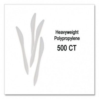Elegant Dinnerware Heavyweight Cutlery, Knife, Plastic, White, 500/Box