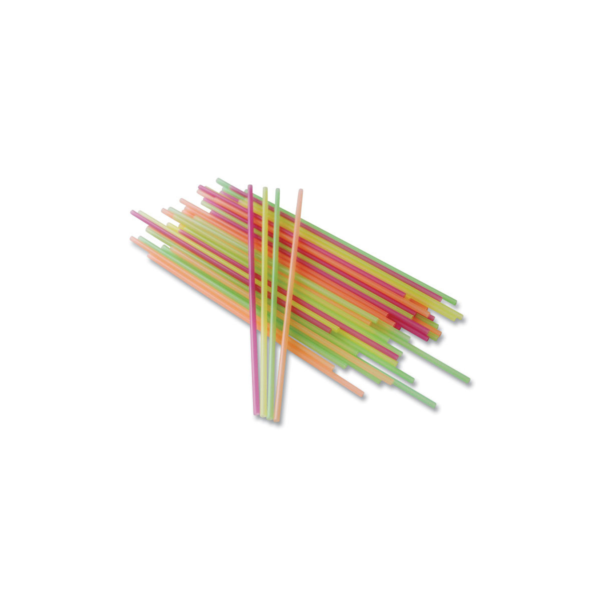 Stirrer straws are great for coffees, sodas and a host of other beverages. Four assorted colors let you color-code drinks. Brighten any beverage.