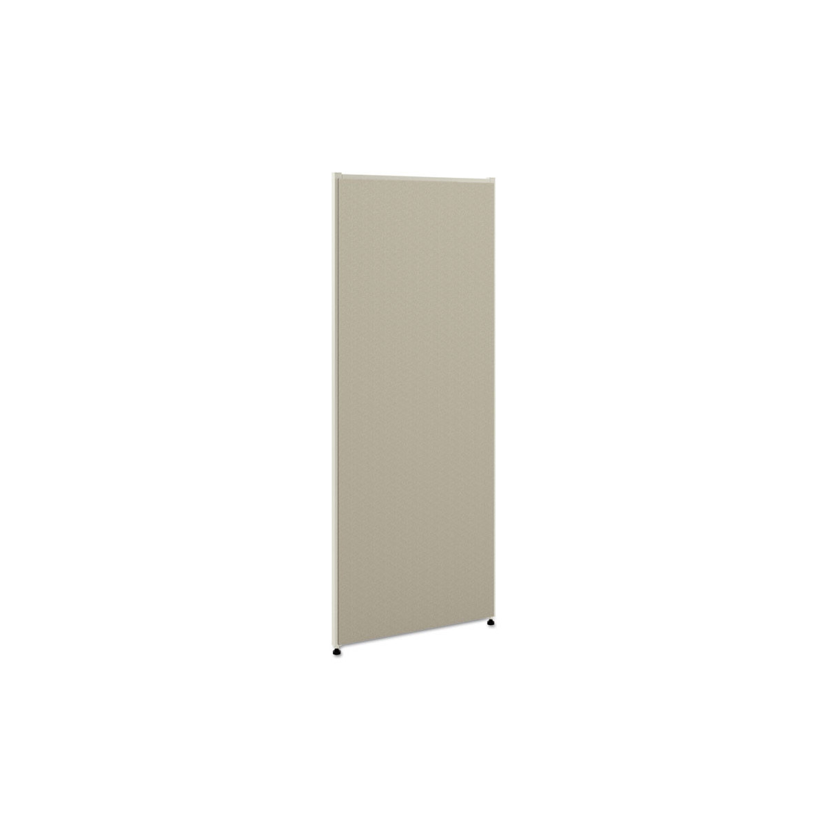 Panels can be freestanding with optional T-Base Foot (sold separately), or can be connected together to create walls, hallways and enclosed offices. Semi-tackable, gray fabric with matching powder coated steel frame. Adjustable glides with all panels.