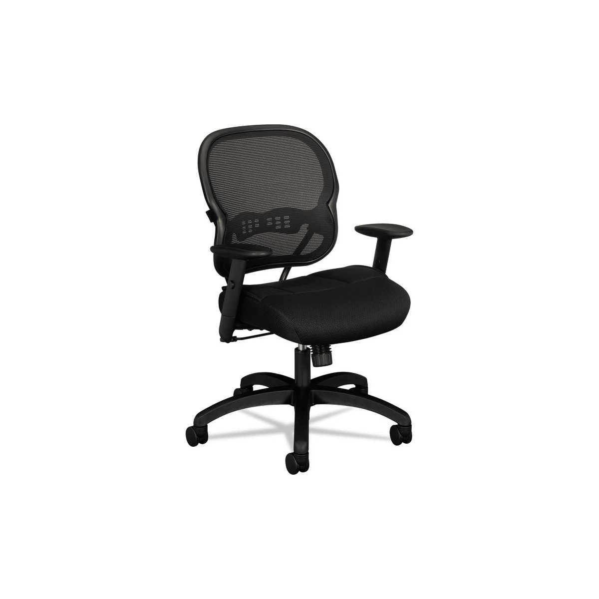 2-to-1 synchro tilt provides a deep, comfortable recline. Highly-styled breathable mesh back. Mesh seat cushion with two layers of padding for increased comfort. Height-adjustable arms accommodate a variety of users. Five-star base with casters for easy mobility.