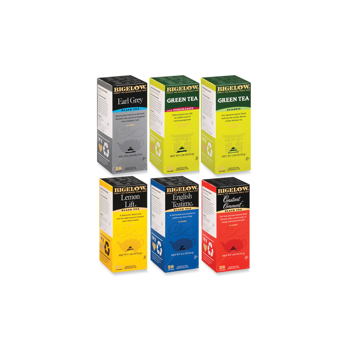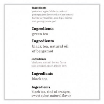 Use this six-tea assortment to pick the type of tea that best suits your mood. Bags are individually foil wrapped, helping to retain freshness.