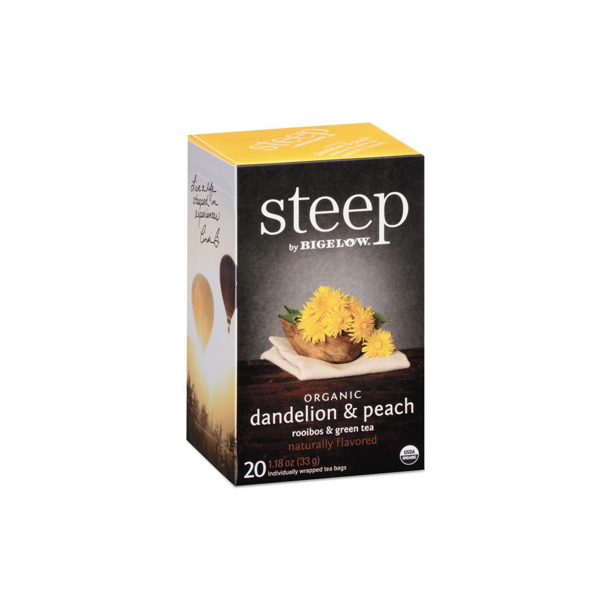 Dandelion & Peach Rooibos & Green Tea-Gentle tasting dandelion leaves blend with a delicate green tea and a sweet hint of peach, for a mild soothing flavor with earthy tones.