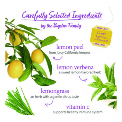 All-natural, beautifully lemony tea contains a full daily dose of Vitamin C in every bag. A touch of hibiscus complements the fruity, slightly tart flavor and aroma perfectly. Individually overwrapped tea bags ensure that the last cup of tea is just as fresh and delicious as the first. Caffeine-free.