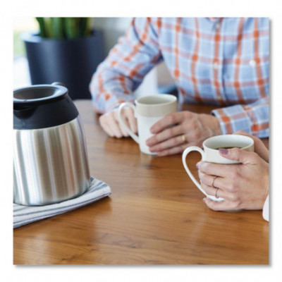 Speed Brew coffee maker can brew ten cups of coffee in about four minutes because it stores hot water in a stainless steel commercial grade tank allowing it to brew coffee on demand. It's always on your counter, always plugged in and always ready to brew the perfect cup of coffee. An exclusive sprayhead design showers the entirety of the coffee grounds.