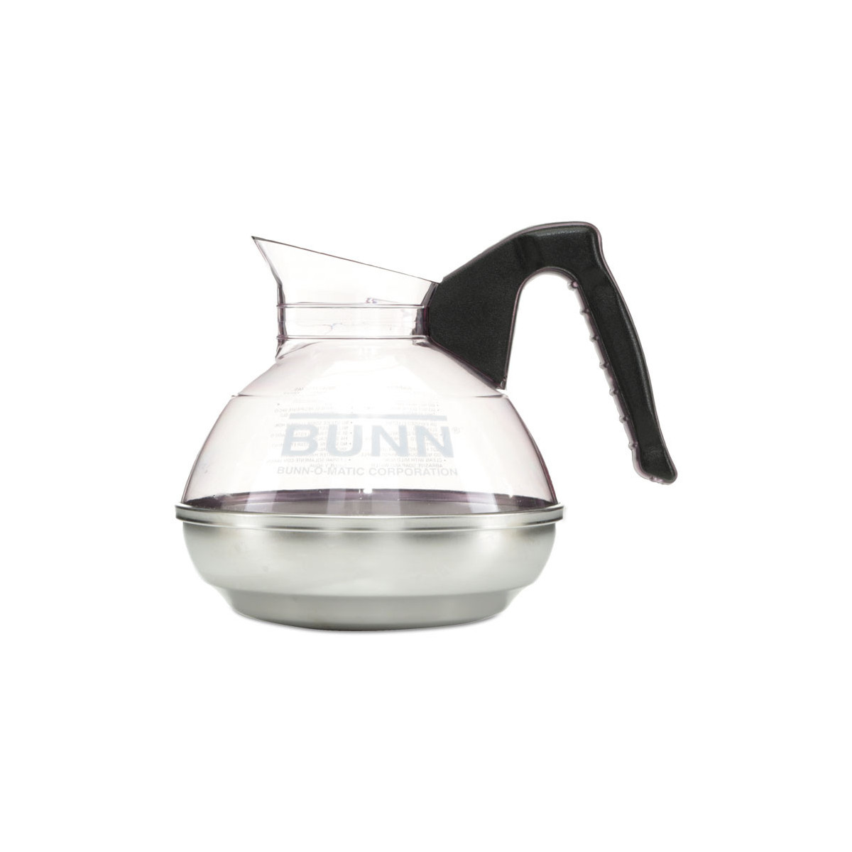 BUNN® exclusive design with a high quality stainless steel base, impact resistant plastic top and a drip proof, fast-pour lip. Drip proof design enables coffee to be served with ease in a variety of environments. With this clear plastic decanter users can easily identify coffee volume. With a 64 oz capacity, users will have the ability to serve 8 cups per decanter.