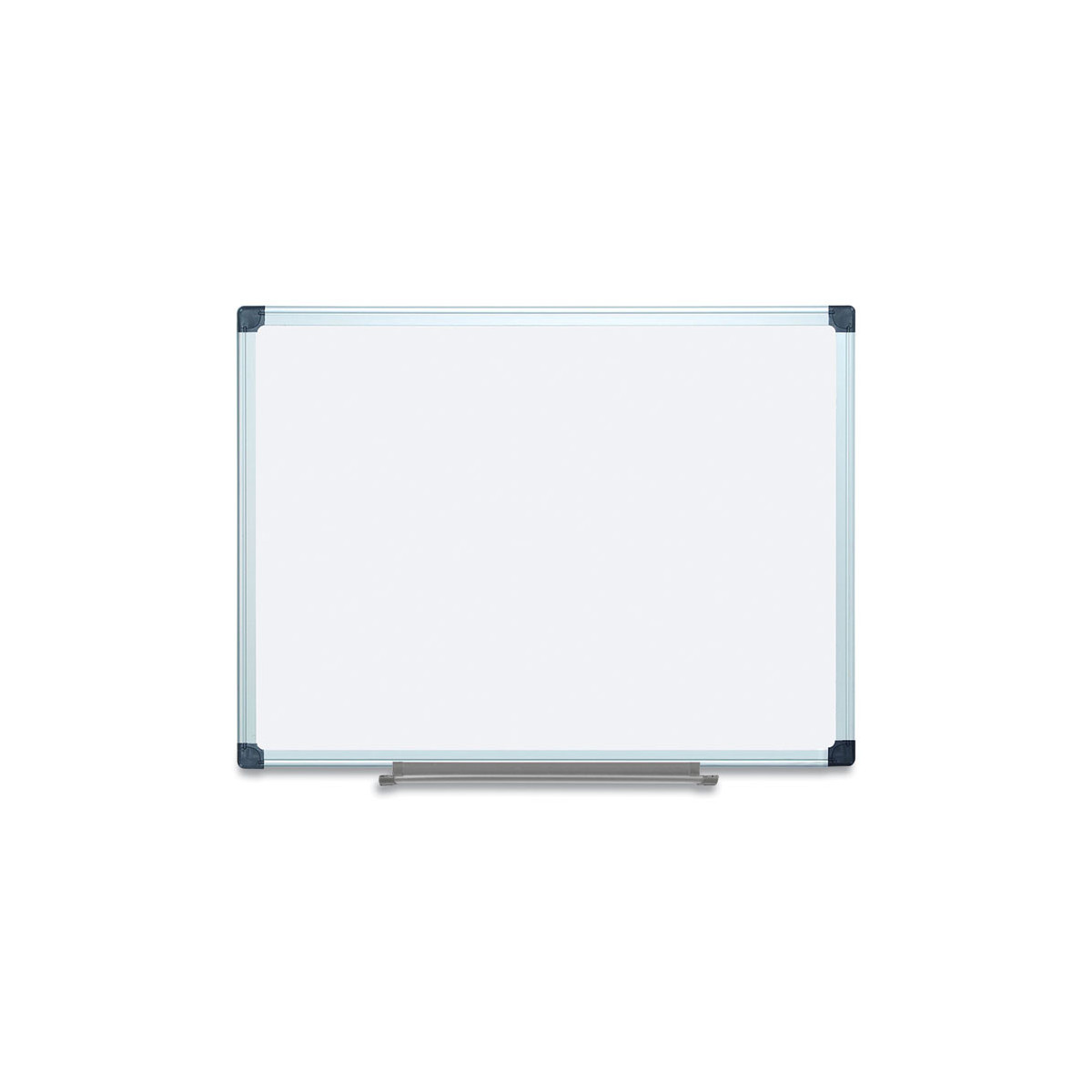 The Maya Porcelain Magnetic Dry-erase Board features a durable whiteboard surface that resists staining, ghosting and scratching to keep its bright, high-quality appearance through years of extensive use. Magnetic surface allows you to instantly post messages or attach your magnetic accessories. The professional Maya aluminum frame includes a four-corner mounting system that can be positioned either vertically or horizontally to provide versatility when reconfiguring an office or where wall space is limited. The adjustable aluminum pen tray offers a convenient way to keep your writing utensils within quick reach. This dry-erase board is perfect for classrooms, offices, training environments, meeting rooms and more.