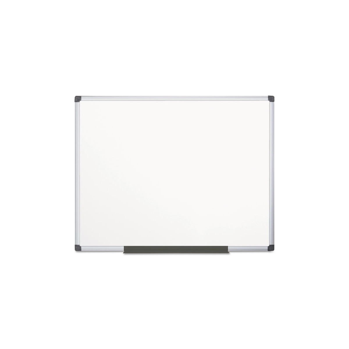 The Maya Porcelain Magnetic Dry-erase Board features a durable whiteboard surface that resists staining, ghosting and scratching to keep its bright, high-quality appearance through years of extensive use. Magnetic surface allows you to instantly post messages or attach your magnetic accessories. The professional Maya aluminum frame includes a four-corner mounting system that can be positioned either vertically or horizontally to provide versatility when reconfiguring an office or where wall space is limited. The adjustable aluminum pen tray offers a convenient way to keep your writing utensils within quick reach. This dry-erase board is perfect for classrooms, offices, training environments, meeting rooms and more.