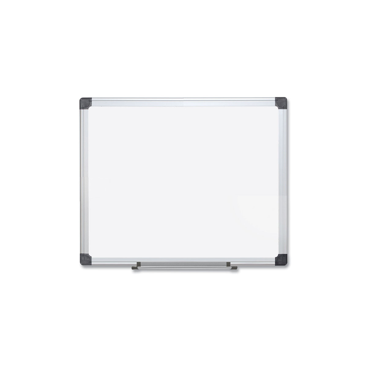 The Maya Porcelain Magnetic Dry-erase Board features a durable whiteboard surface that resists staining, ghosting and scratching to keep its bright, high-quality appearance through years of extensive use. Magnetic surface allows you to instantly post messages or attach your magnetic accessories. The professional Maya aluminum frame includes a four-corner mounting system that can be positioned either vertically or horizontally to provide versatility when reconfiguring an office or where wall space is limited. The adjustable aluminum pen tray offers a convenient way to keep your writing utensils within quick reach. This dry-erase board is perfect for classrooms, offices, training environments, meeting rooms and more.