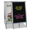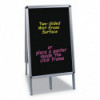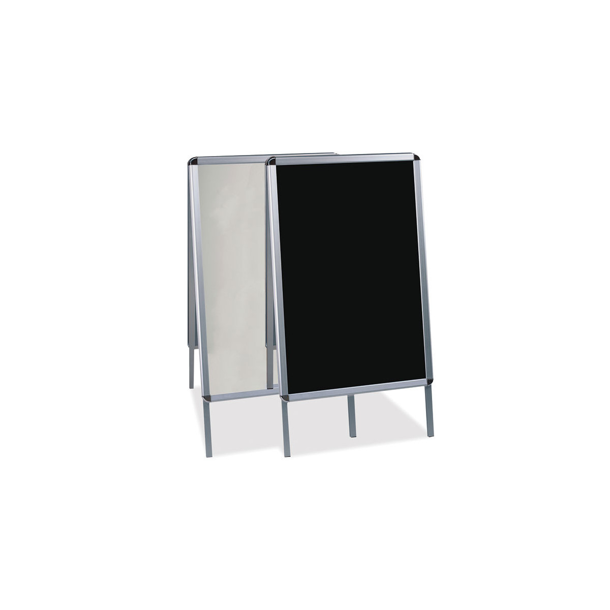 Reversible sign board offers a versatile, simple and efficient solution for displaying information that needs daily or constant updates. The two-sided, black wet erase surfaces are the perfect background for opaque wet erase markers that don't smudge when touched. The sturdy, long-lasting A-frames offer a high-end look. Ideal for restaurants, coffee-shops or spas, this sign helps create a relaxed environment, while being very effective at conveying simple and direct messages.