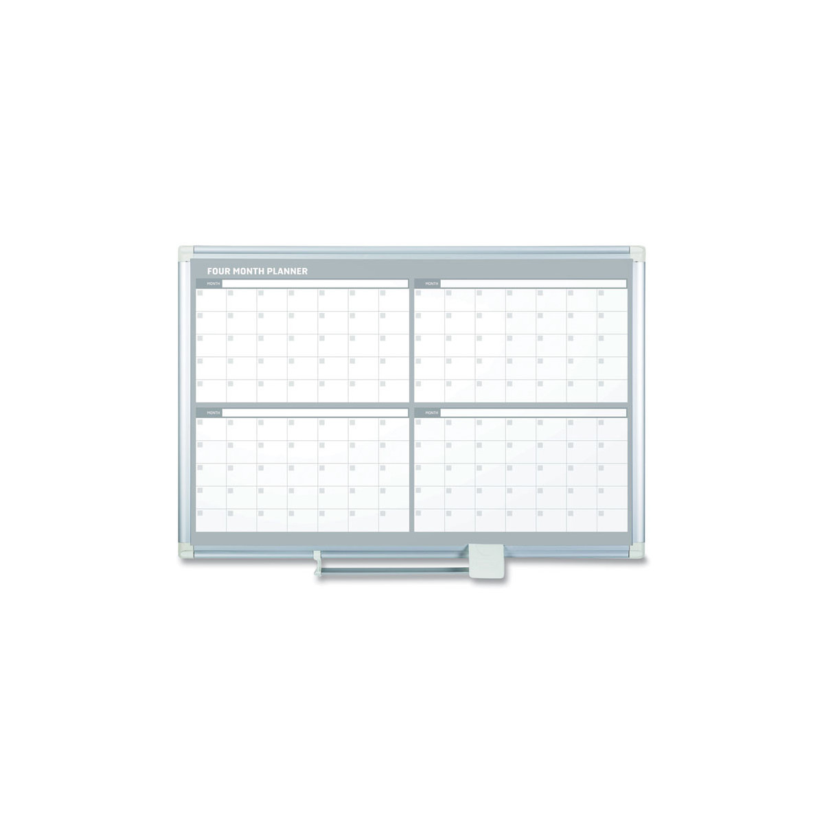 Magnetic Dry Erase Calendar Board, Four-Month Planning/Scheduling, 48" x 36", White Surface, Satin Aluminum Frame