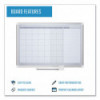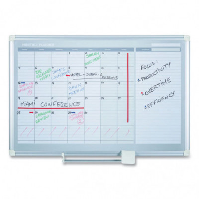 Organization is vital for the success of every business or enterprise. MasterVision® Planning Boards are excellent tools that allow you to keep scheduling and planning on time. Keeping important dates and tasks on display, organizing work-groups or just planning ahead is practical and easy. Magnetic Gold Ultra™ dry erase board allows you to post notes and messages as well as write. The lacquered steel surface is suitable for frequent use. Sturdy aluminum frame features an adjustable tray and the four-corner system for easy mounting.