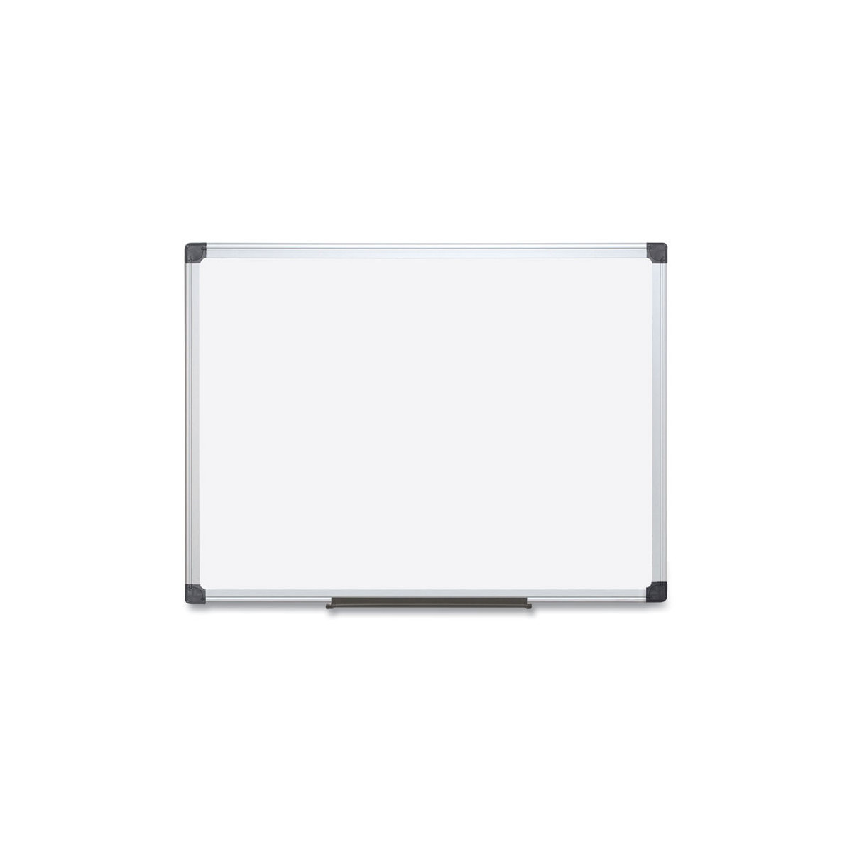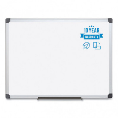 The Maya Magnetic Steel Dry-erase Board features a durable whiteboard surface and high-quality appearance through years of frequent use. Magnetic surface allows you to instantly post messages or attach your magnetic accessories. The professional Maya aluminum frame includes a four-corner mounting system that can be positioned either vertically or horizontally to provide versatility when reconfiguring an office or where wall space is limited. The adjustable pen tray offers a convenient way to keep your writing utensils within quick reach. This dry-erase board is perfect for classrooms, offices, training environments, meeting rooms and more.