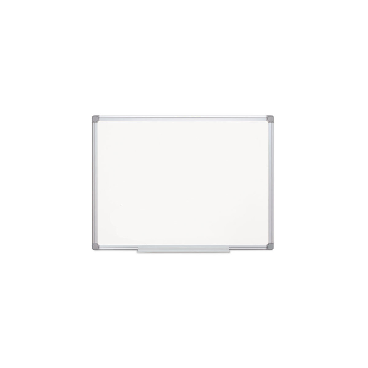 MasterVision® Earth Silver Easy Clean Dry Erase Boards are a solution that combine superior writing and cleaning performance with professional Maya frame quality. Made from recycled and recyclable materials, these non-magnetic boards are double-sided to provide twice the life of standard melamine whiteboards. Both board surfaces are suitable for moderate use and can easily be flipped when necessary. Four-corner system allows for both vertical and horizontal mounting, offering versatility when reconfiguring an office and where wall space might be limited. An adjustable accessory rail offers a convenient way to keep your markers within easy reach. Sturdy, heavy-gauge aluminum frame.