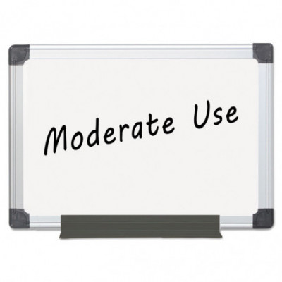 Melamine surface dry erase board is designed for occasional use and excellent value. Sturdy anodized aluminum frame includes a snap-on pen tray. Vertical or horizontal mounting is easy with the four-corner system.
