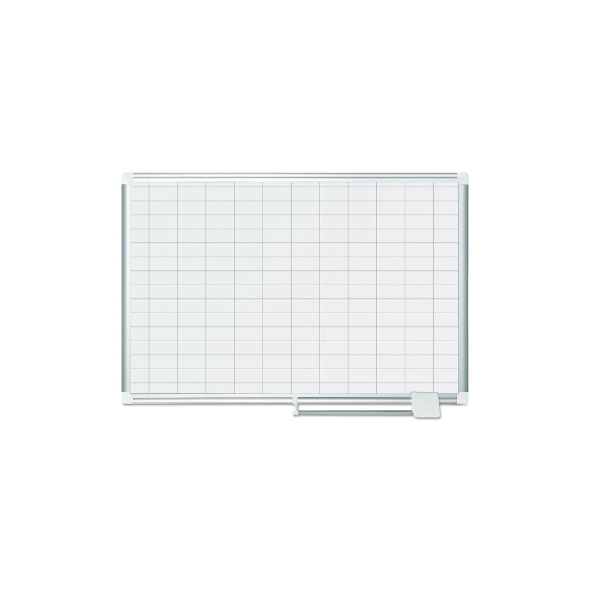 Gridded Magnetic Steel Dry Erase Project Planning Board, 1" x 2" Cell, 36" x 24", White Surface, Satin Aluminum Frame