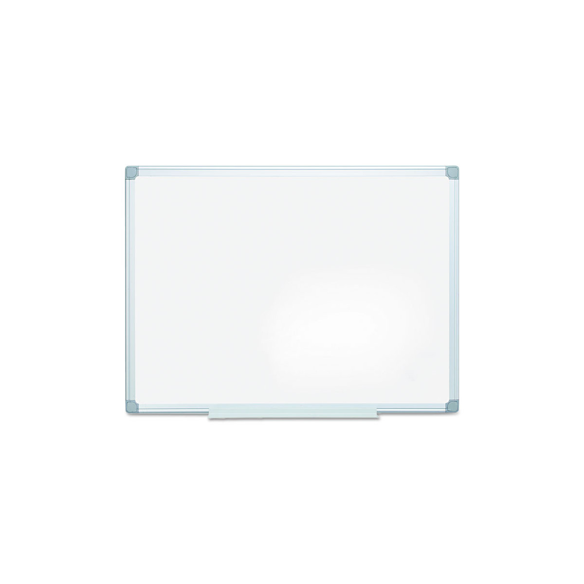 MasterVision® Earth Silver Easy Clean Dry Erase Boards are a solution that combine superior writing and cleaning performance with professional Maya frame quality. Made from recycled and recyclable materials, these non-magnetic boards are double-sided to provide twice the life of standard melamine whiteboards. Both board surfaces are suitable for moderate use and can easily be flipped when necessary. Four-corner system allows for both vertical and horizontal mounting, offering versatility when reconfiguring an office and where wall space might be limited. An adjustable accessory rail offers a convenient way to keep your markers within easy reach. Sturdy, heavy-gauge aluminum frame.