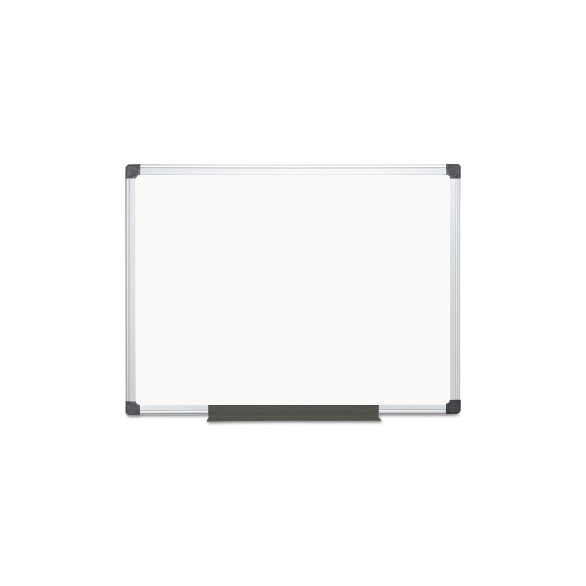 The Maya Magnetic Steel Dry-erase Board features a durable whiteboard surface and high-quality appearance through years of frequent use. Magnetic surface allows you to instantly post messages or attach your magnetic accessories. The professional Maya aluminum frame includes a four-corner mounting system that can be positioned either vertically or horizontally to provide versatility when reconfiguring an office or where wall space is limited. The adjustable pen tray offers a convenient way to keep your writing utensils within quick reach. This dry-erase board is perfect for classrooms, offices, training environments, meeting rooms and more.