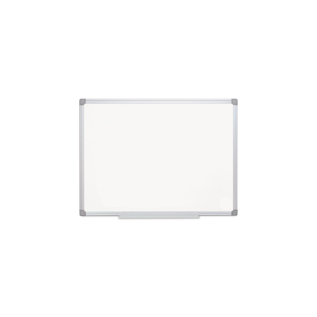 The MasterVision™ Earth Magnetic Steel Dry Erase Board is a solution that combines the best in writing and cleaning performance with professional Maya frame quality. Made from recycled and recyclable materials, this board is suitable for frequent use. The magnetic surface cleans easily and features a sturdy aluminum frame that has an easy 4-corner mounting system that can be positioned either vertically or horizontally, offering versatility when reconfiguring an office or where wall space is limited. The adjustable pen tray offers a convenient way to keep your writing utensils within quick reach.