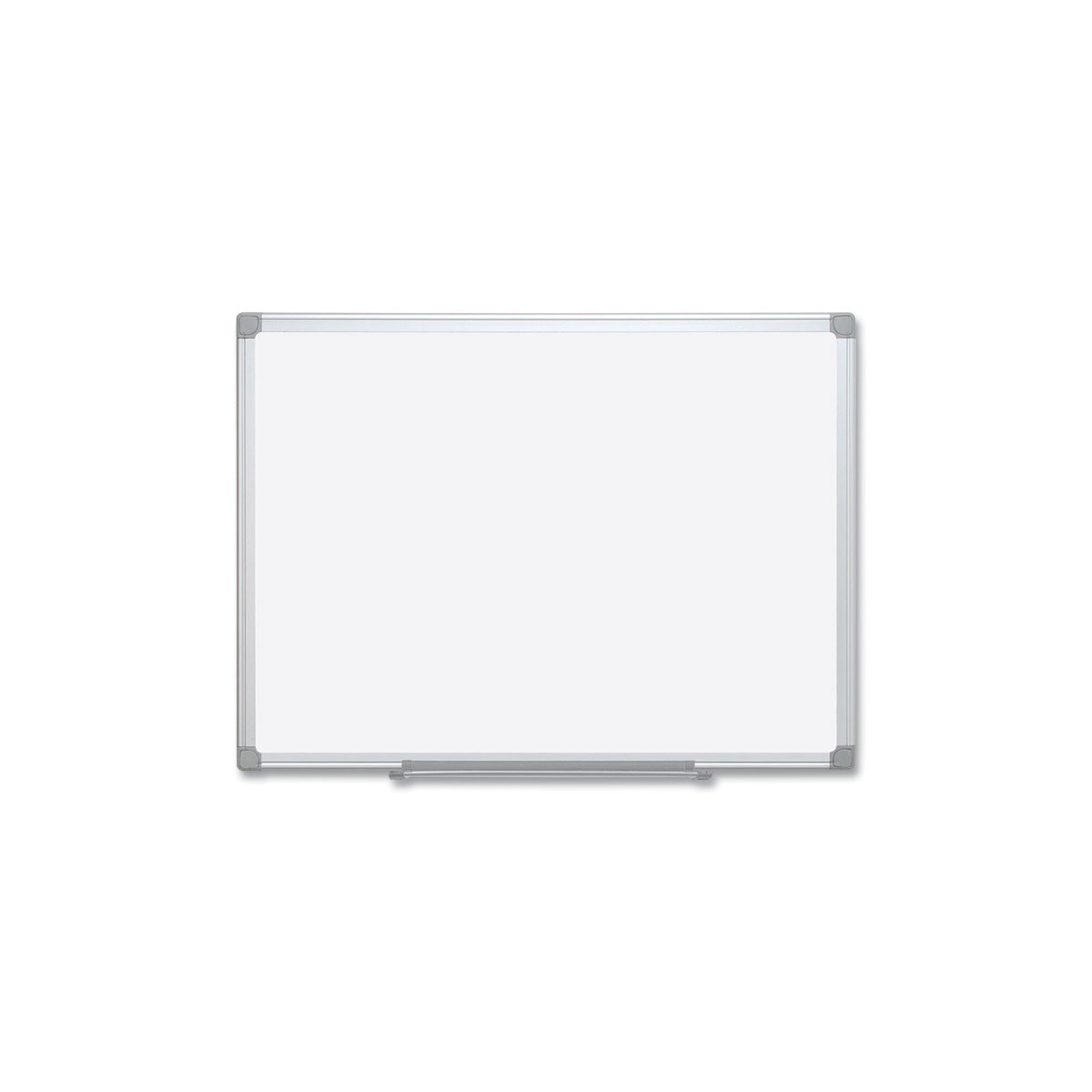 MasterVision® Earth Silver Easy Clean Dry Erase Boards are a solution that combine superior writing and cleaning performance with professional Maya frame quality. Made from recycled and recyclable materials, these non-magnetic boards are double-sided to provide twice the life of standard melamine whiteboards. Both board surfaces are suitable for moderate use and can easily be flipped when necessary. Four-corner system allows for both vertical and horizontal mounting, offering versatility when reconfiguring an office and where wall space might be limited. An adjustable accessory rail offers a convenient way to keep your markers within easy reach. Sturdy, heavy-gauge aluminum frame.