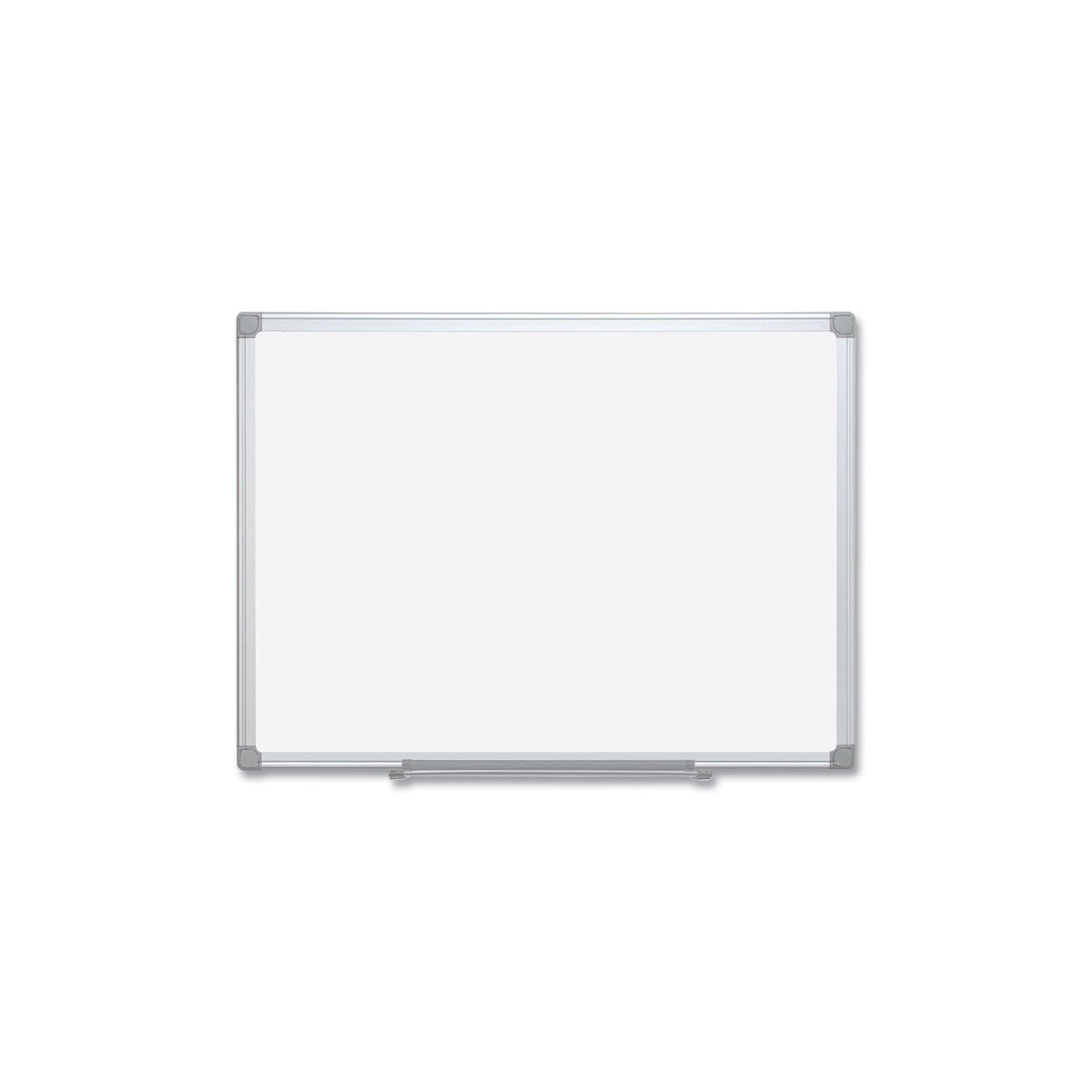 Basic whiteboards are perfect for moderate, everyday use. Double-sided boards provide twice the writing surface and twice the life. The frame is sturdy aluminum with an easy-to-mount four-corner system. Can be mounted vertically or horizontally. Handy, snap-on accessory rail and mounting hardware included.