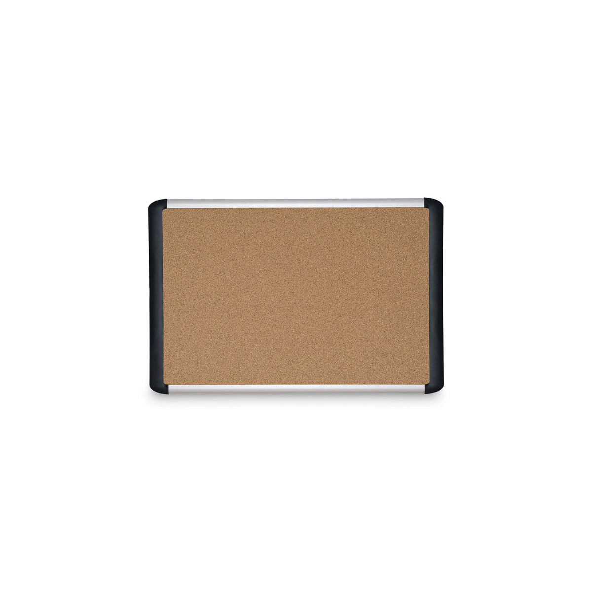 Tech Cork Board, 48" x 36", Tan Surface, Silver/Black Aluminum Frame