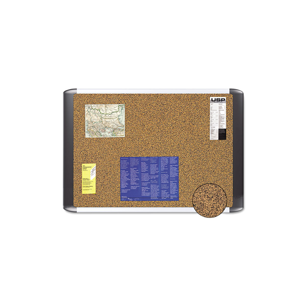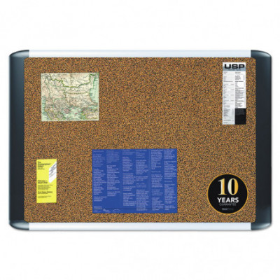 Tech cork is a special self-healing bulletin board surface based on a fine blend of cork and rubber. Thick and extremely resilient, the unusual surface offers a texture that gives these boards a contemporary look while providing years of use. Contemporary aluminum and plastic frame enhances any office environment.