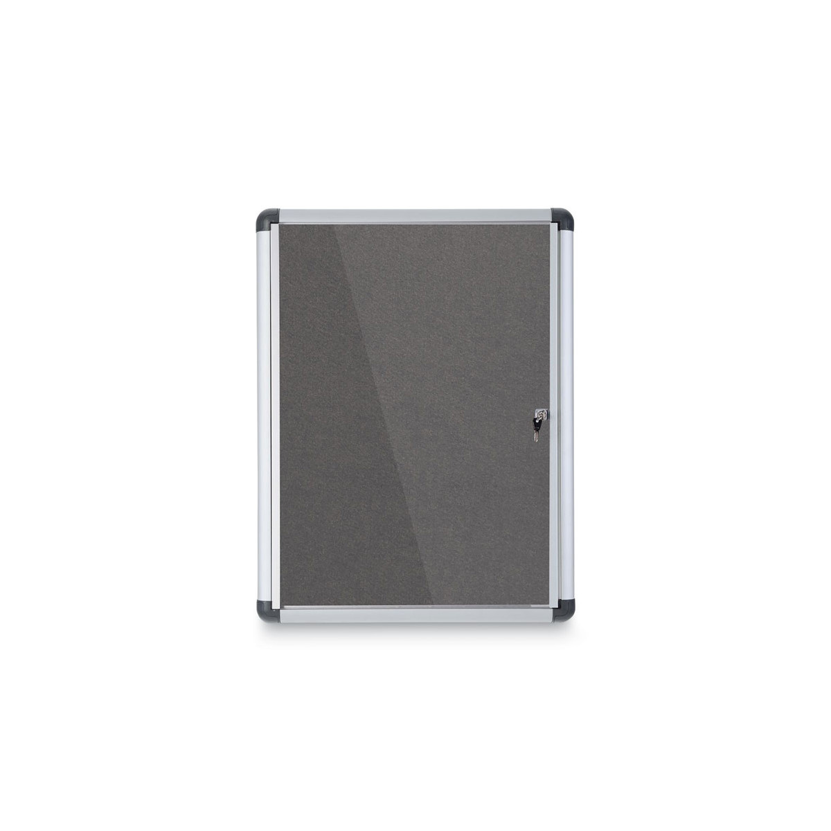 Enclosed fabric bulletin board showcases information in a beautiful way. Clear, locking door provides security and protection. Perfect for menus, schedules, timetables and other vital posting. Features include an anodized aluminum frame, a fire-retardant felt surface and a strong acrylic door.