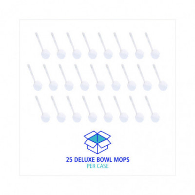 Deluxe bowl mop has an easy-to-use angled head and 12" handle that improves access to hard to reach areas. Great for scrubbing with reliable performance. The fuller head provides greater absorbency to clean tough stains without making a mess. White plastic handle is easy to grip and wipe clean.