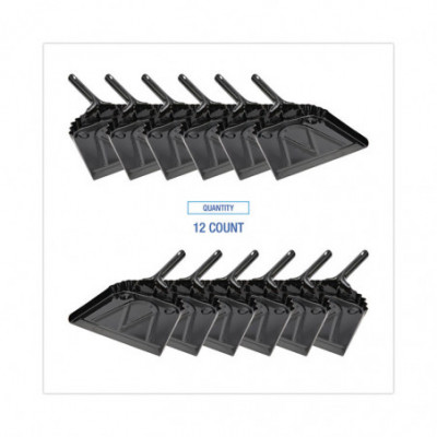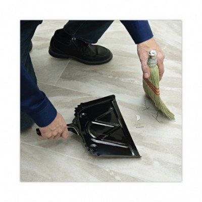 Durable, black, metal dust pan is made from a single piece of steel for the ultimate in strength. Constructed from strong, 20-gauge steel and protected by a baked enamel finish that is meant to withstand heavy use. Portable and sturdy dust pan provides long service life, even with extended use. Includes a built-in hang-up or lanyard hole for convenient storage.