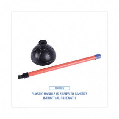 Boardwalk® Toilet Plunger is a sturdy, industrial strength, toilet plunger that provides better bang for your buck. The reliable plunger offers more performance and sanitation for the toughest clogged toilets. Constructed with a large extended cup to ensure excellent pressure application on a variety of toilet sizes. The plastic handle is easier to clean and sanitize than a wood handle.