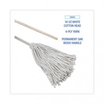Handle/Deck Mops, Number16 White Cotton Head, 48" Natural Wood Handle