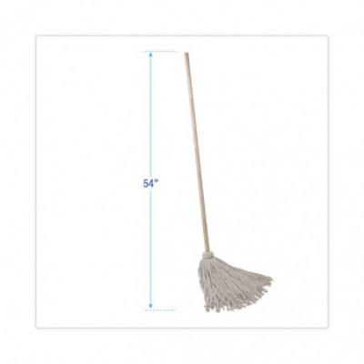 Handle/Deck Mops, Number24 White Cotton Head, 54" Natural Wood Handle, 6/Pack