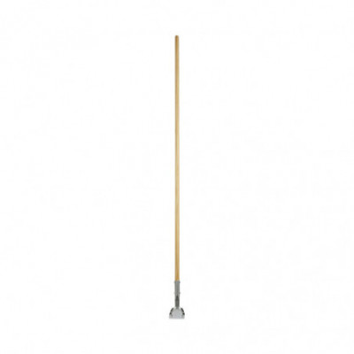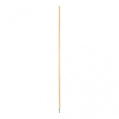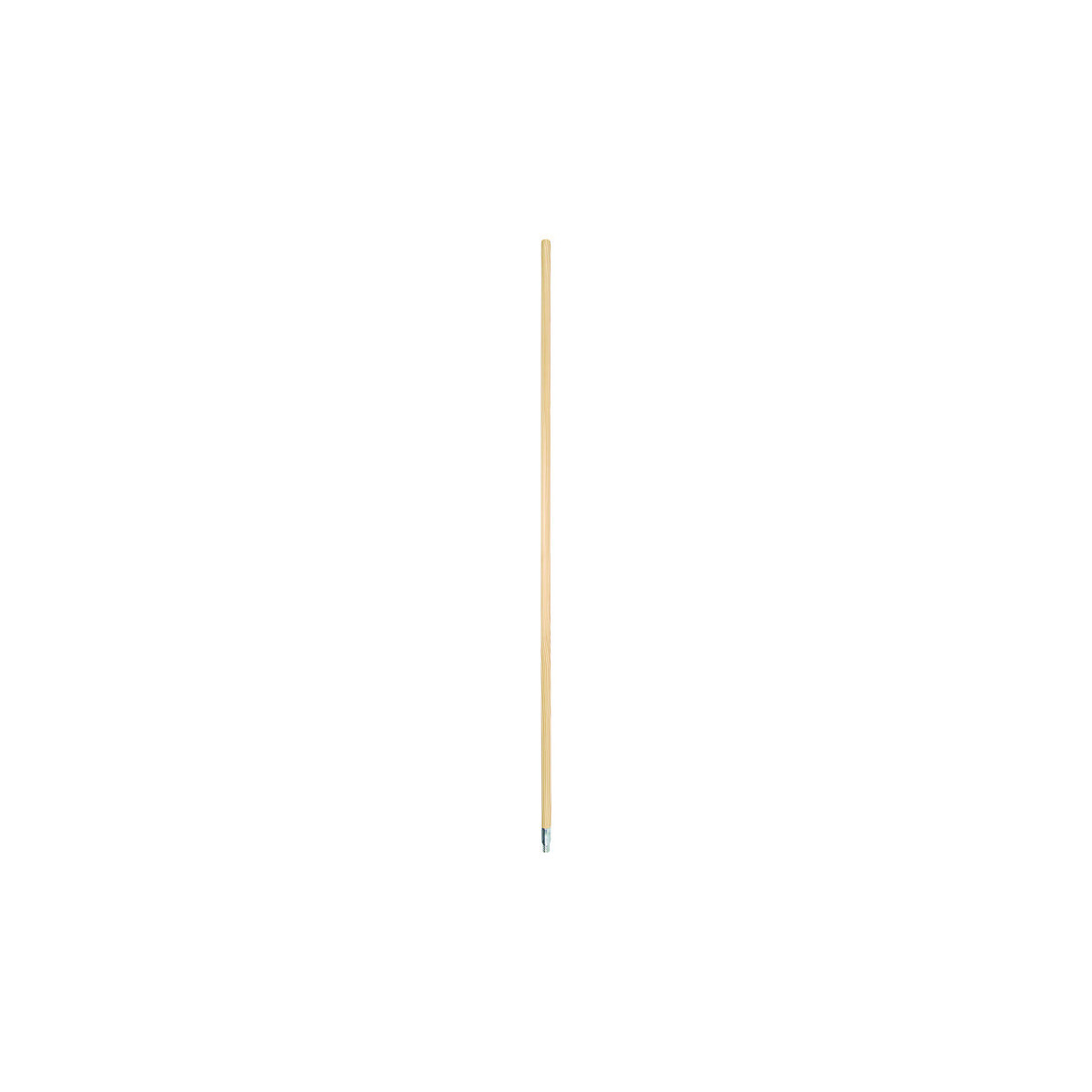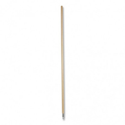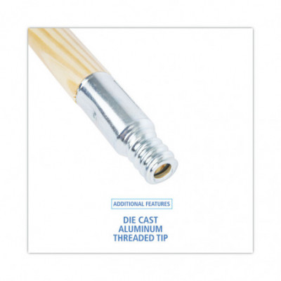 Long-lasting, die-cast aluminum threaded tip is secured to a natural lacquered hardwood broom handle. Composed of a durable handle and metal thread, this handle is strong and reliable. The handle's smooth grip is ideal for regular use with or without gloves in any environment. The clear-coated finish is easily wiped clean and repels dust. The metal threaded tip is compatible with brooms using the same threading and assembles without tools.