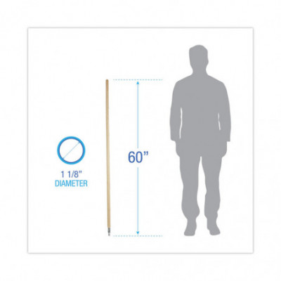 Long-lasting, die-cast aluminum threaded tip is secured to a natural lacquered hardwood broom handle. Composed of a durable handle and metal thread, this handle is strong and reliable. The handle's smooth grip is ideal for regular use with or without gloves in any environment. The clear-coated finish is easily wiped clean and repels dust. The metal threaded tip is compatible with brooms using the same threading and assembles without tools.