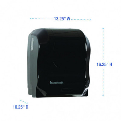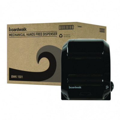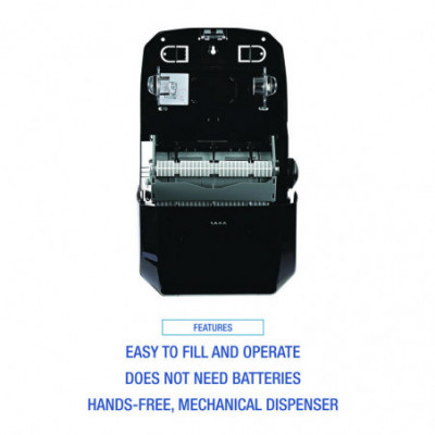 Convenient, hands-free, mechanical towel dispenser provides easy access to towels while minimizing cross-contamination in washrooms. The low maintenance design does not require batteries. An automatic mechanical cutting feature dispenses 11" portions of paper, plenty for your patrons to dry their hands. The dispenser is compatible with hardwound towels. Great for busy public washrooms where there isn't an attendant on duty and maintenance is limited.