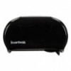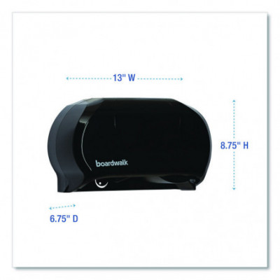 Twin tissue dispenser works to reduce run-outs and prevent waste. Compact double roll standard tissue dispenser takes up a minimum of space; perfect for small restrooms. Two-roll capacity with auto-transfer prevents paper run-outs, with second roll automatically sliding into place after initial roll is depleted. 1.5" mandrel.