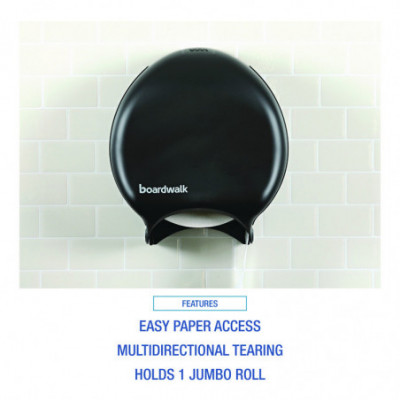 Attractive, user-friendly, single roll, toilet tissue dispenser is a great choice for public restrooms. The jumbo roll compatible size ensures patrons have toilet tissue when they need it with minimal maintenance. Designed to hold one jumbo roll, compatible with Boardwalk®, Windsoft®, and other brands of toilet paper. The dispenser provides easy access to paper and multi-directional tearing for easy use. Sleek and modern design seamlessly fits into nearly any restroom décor.